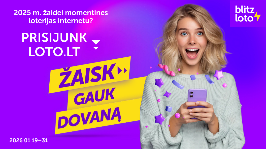 Praėjusiais metais mėgavaisi momentinėmis loterijomis internetu? Pratęsk linksmybes ir gauk dovanų! Keliauk į savo loto.lt paskyrą ir ieškok tau skirtos BLITZ LOTO misijos. Pasiūlymas galioja sausio 19–31 d. |