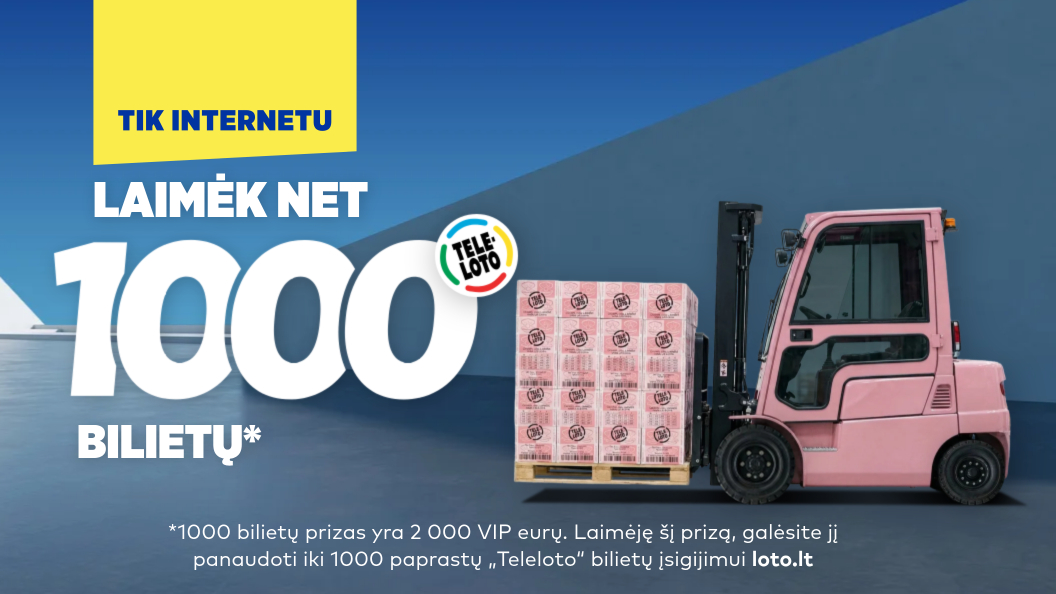 *1 000 bilietų prizas yra 2 000 VIP eurų. Laimėjęs šį prizą, galėsi jį panaudoti iki 1 000 paprastų „Teleloto“ bilietų įsigijimui.